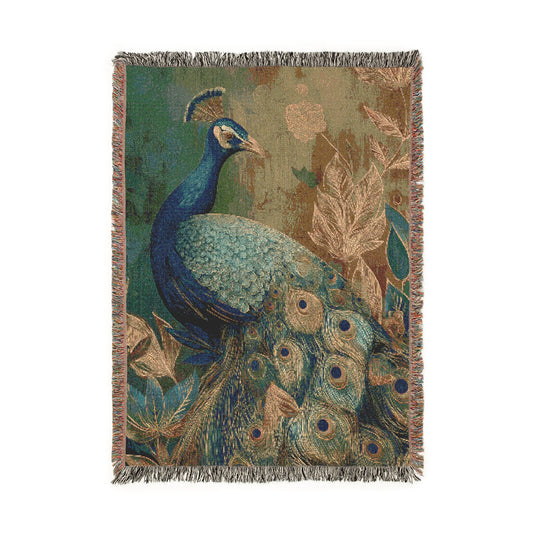 Peacock Woven Blanket, Luxurious Vintage Style Home Decor, Colorful Fringed Throw Sofa Bed Wall Art, Nature Elegance Warmth Blanket