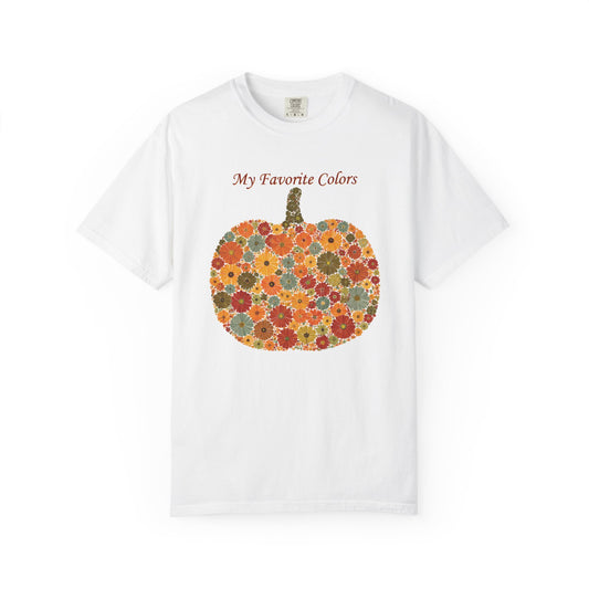 Comfort Colors Pumpkin Flower T-Shirt, Autumn Floral Tee, My Favorite Colors Fall Shirt, Cute Harvest Festival Top, Thanksgiving Shirt