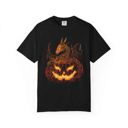 Comfort Colors Fire Dragon Halloween Pumpkin T-shirt, Gothic Fantasy Tee, Shirt for Halloween Parties, Halloween Costume Shirt, Dragon Lover