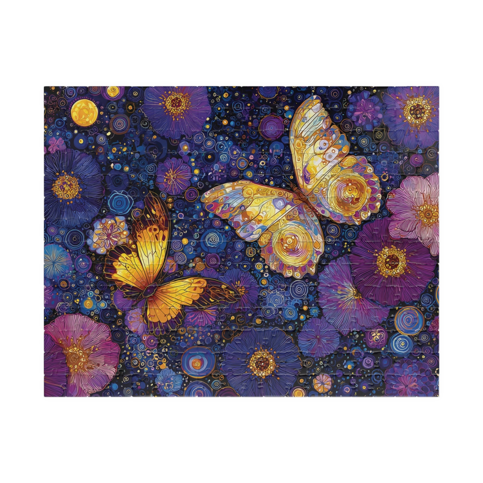 This vibrant jigsaw puzzle features a dazzling abstract night garden of luminous butterflies and glowing blossoms in rich shades of gold, purple, and deep blue. The intricate artwork is perfect for a cozy evening or a creative gift, providing a relaxing and rewarding assembly experience. Once complete, it's a striking piece you'll be proud to frame and display. Relevant for puzzle enthusiasts, art lovers, and anyone looking for a unique and colorful activity. Perfect for gift-giving, holidays, and family gatherings.