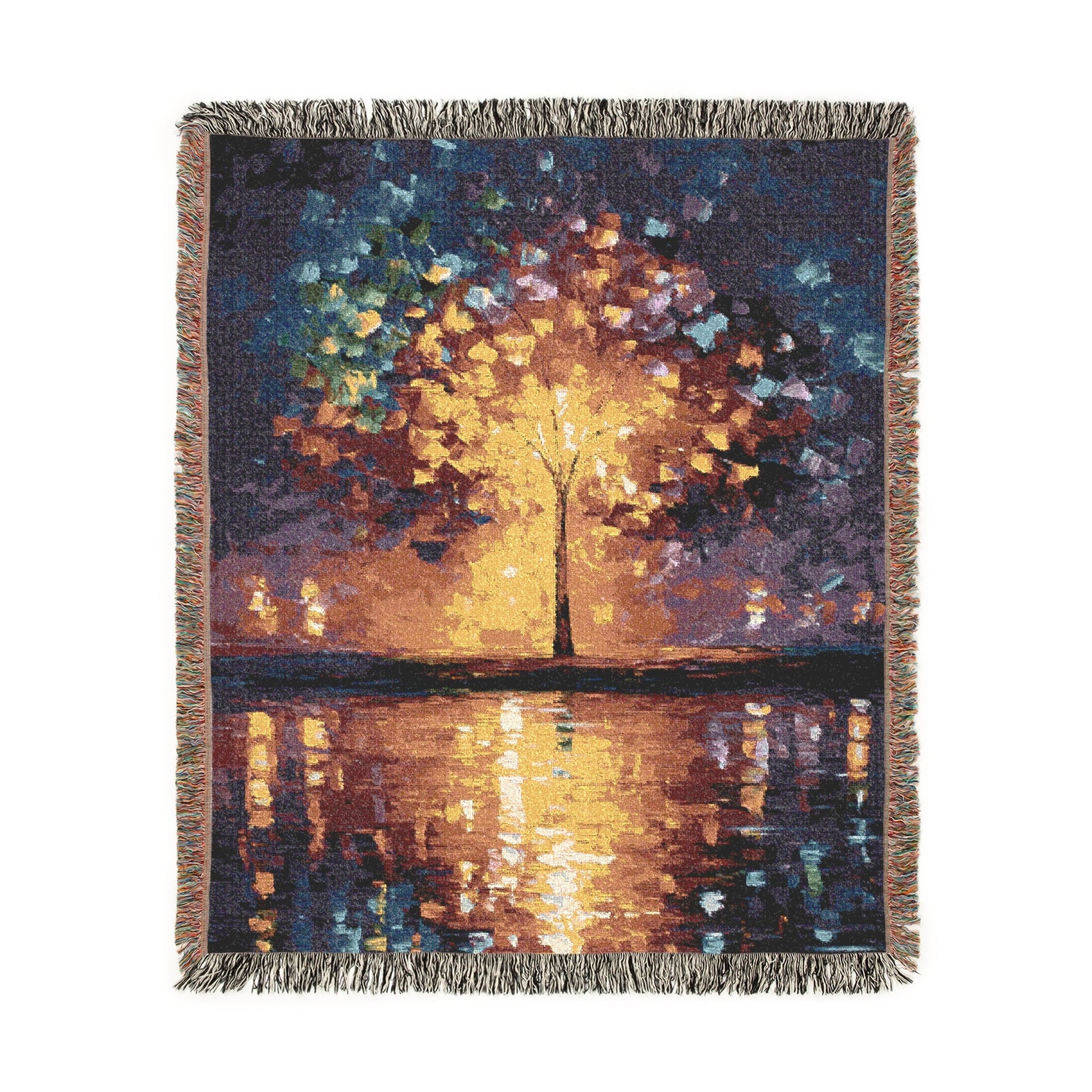 Abstract Tree Woven Blanket, Impressionist Art Tapestry, Tree of Life Jacquard Blanket, Colorful Glowing Tree Throw, Landscape Wall Hanging