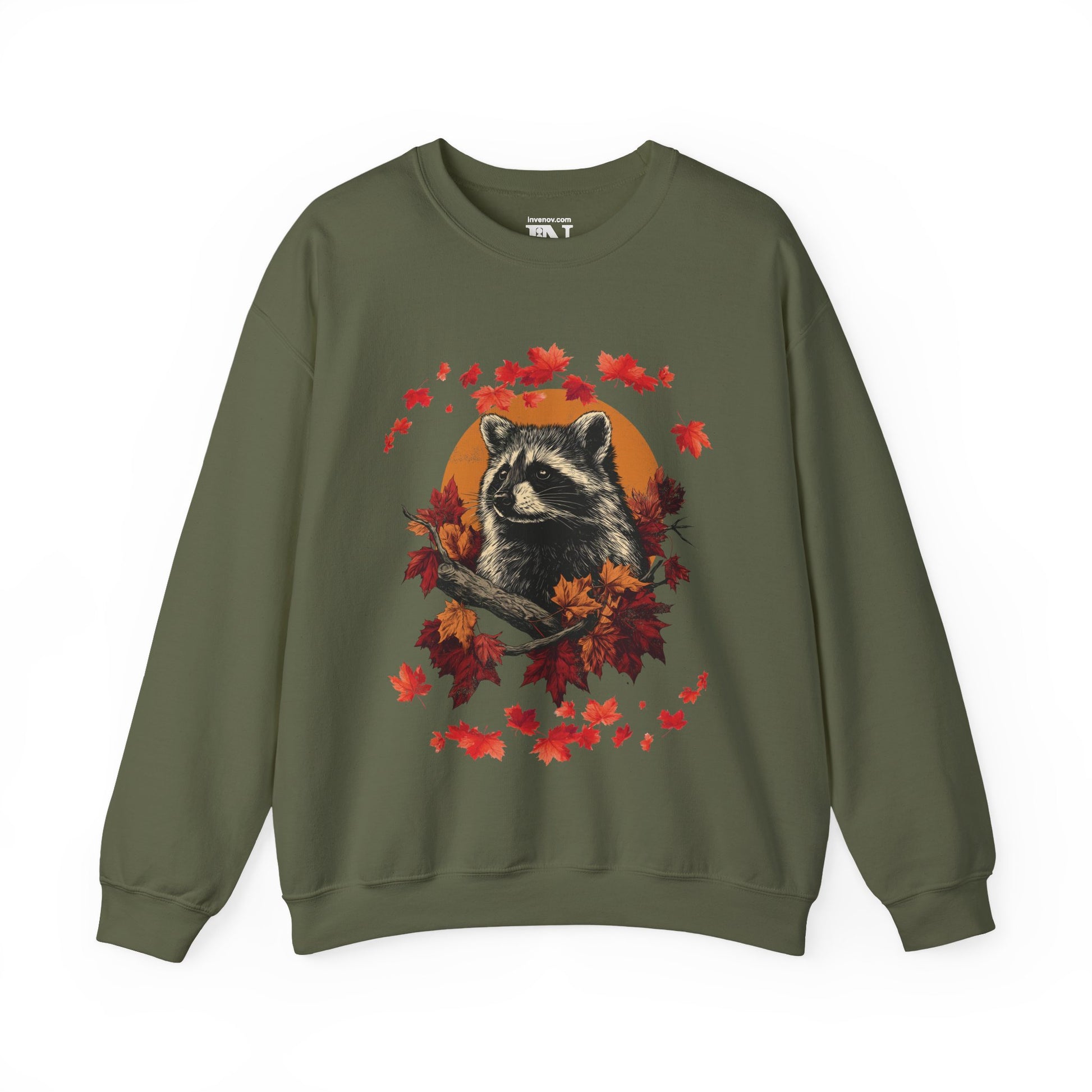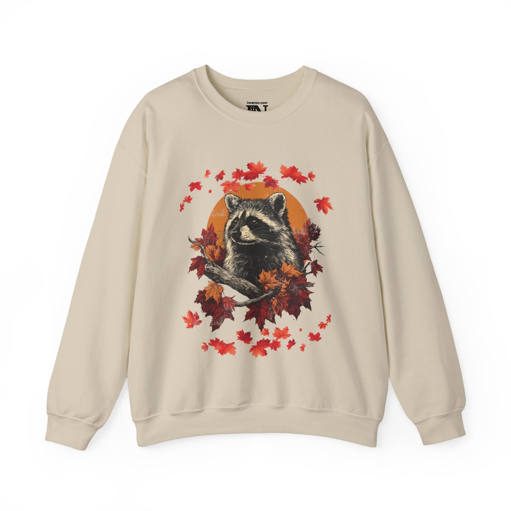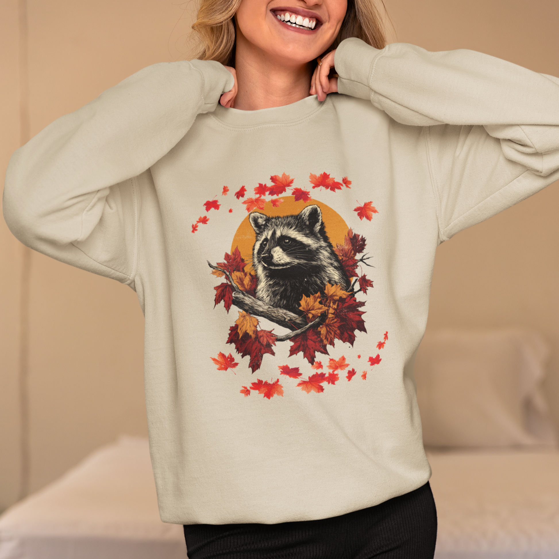 Autumn Raccoon Sweatshirt, Nature Lover Fall Crewneck, Cozy Autumn Leaves Jumper, Wildlife Gift, Outdoor Enthusiast Sweater