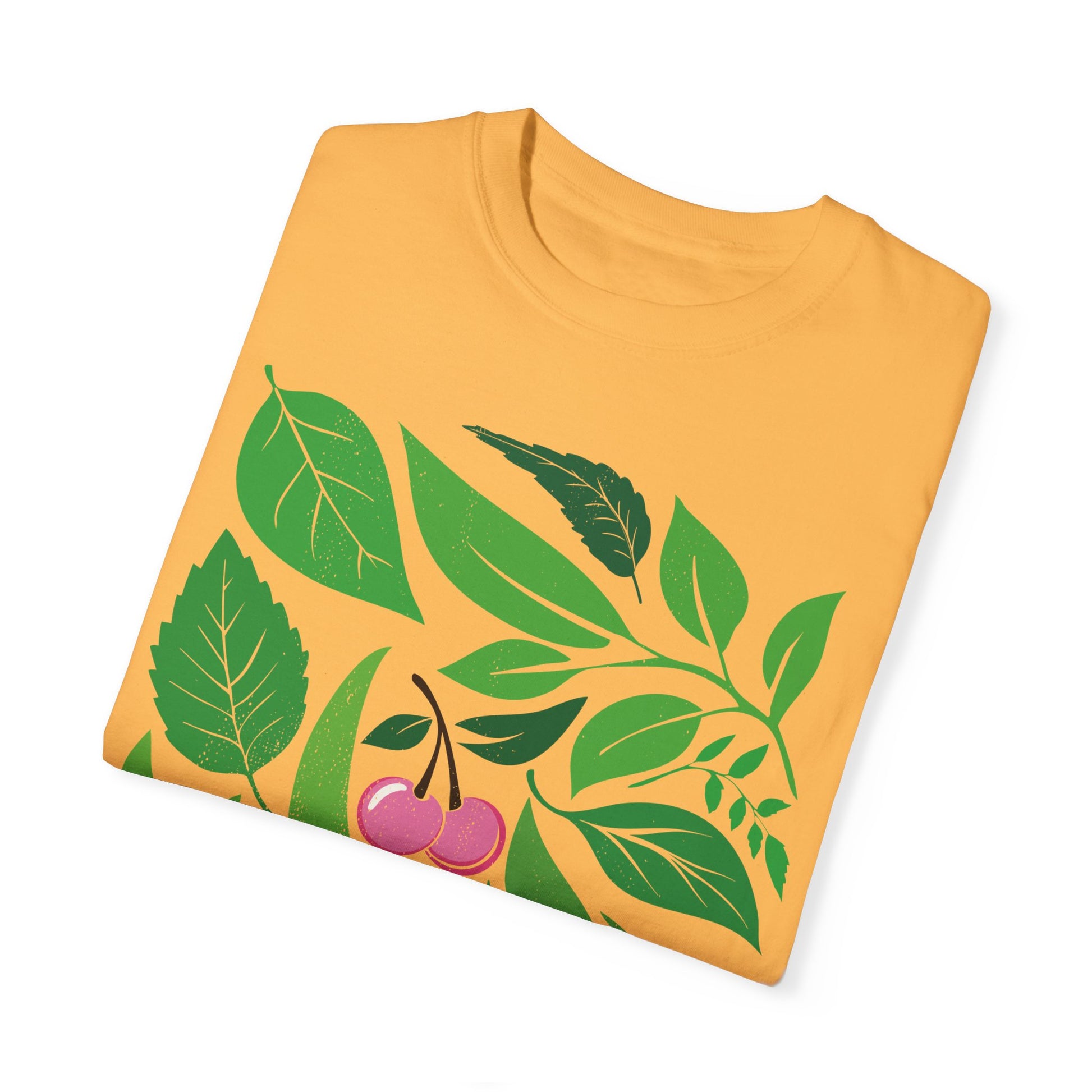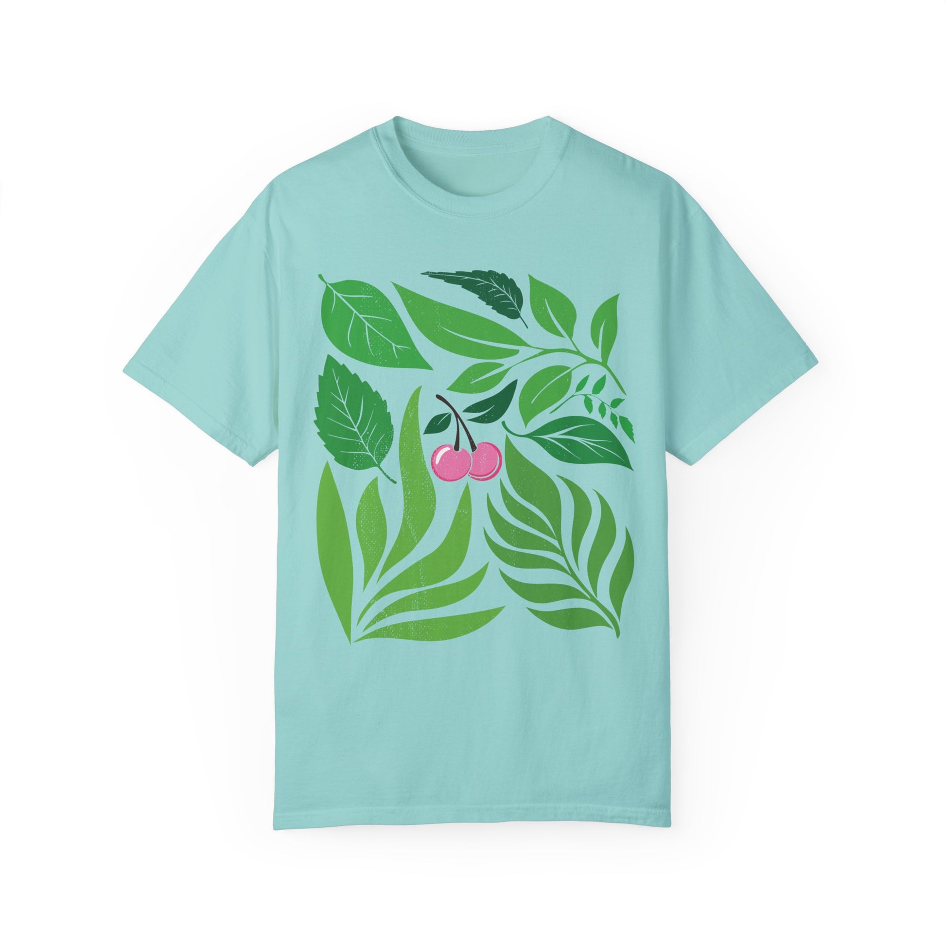 Botanical Cherry T-Shirt, Boho Nature-Inspired Graphic Tee, Plant Lover Gift, Tropical Shirt, Organic Botanical Top, Summer Vibes Clothing