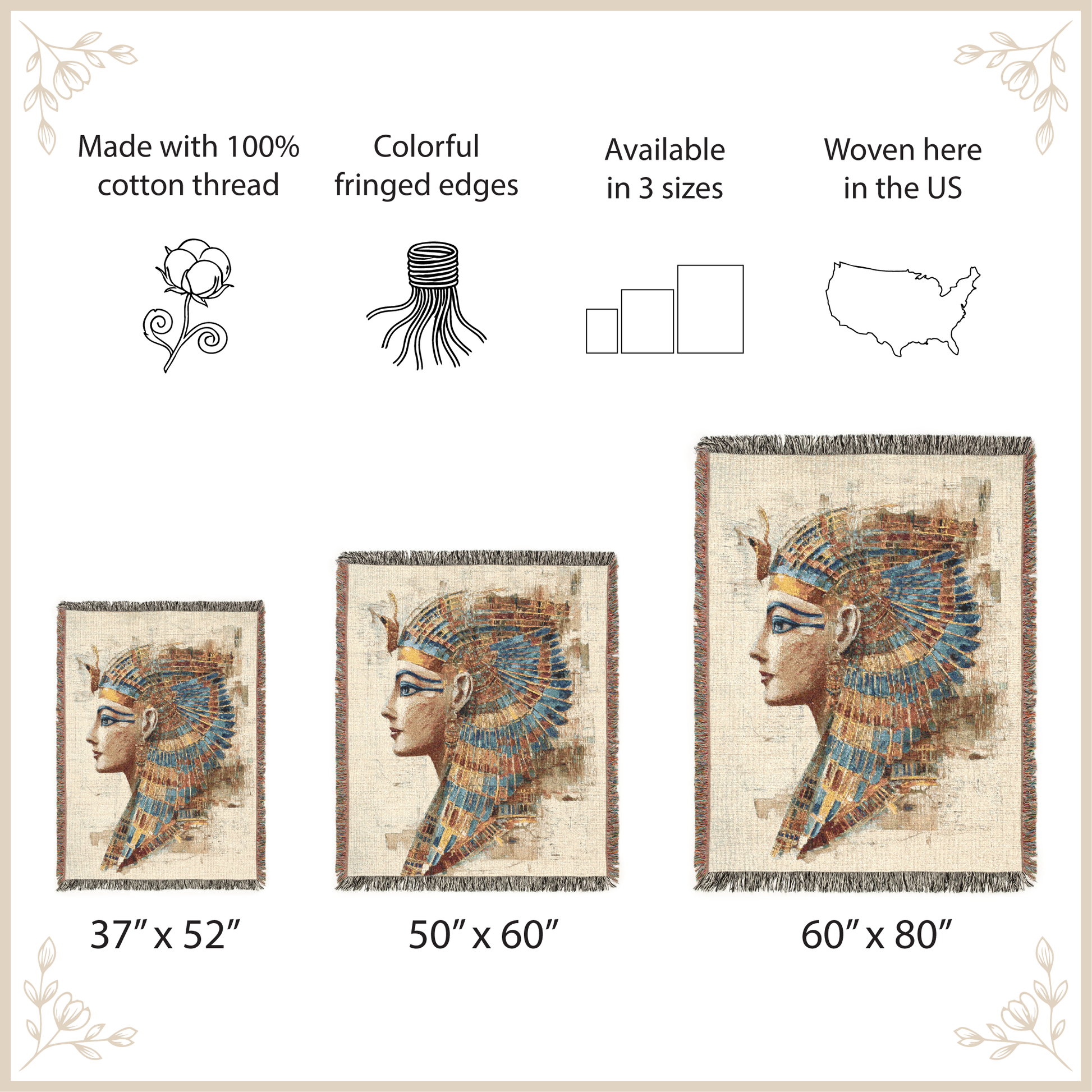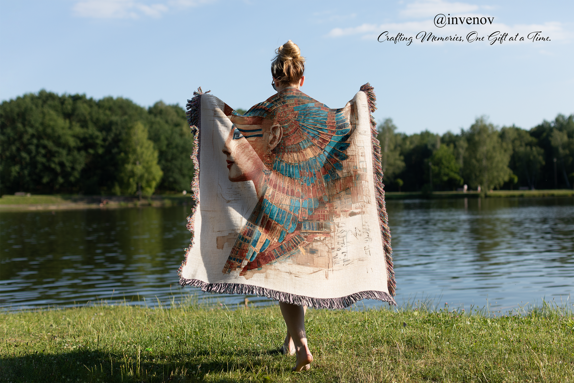 Egyptian Queen Woven Blanket, Ancient Style Tapestry Throw, Egypt Cleopatra Art, History Lover Gift, Boho Museum Decor, Archaeology Present