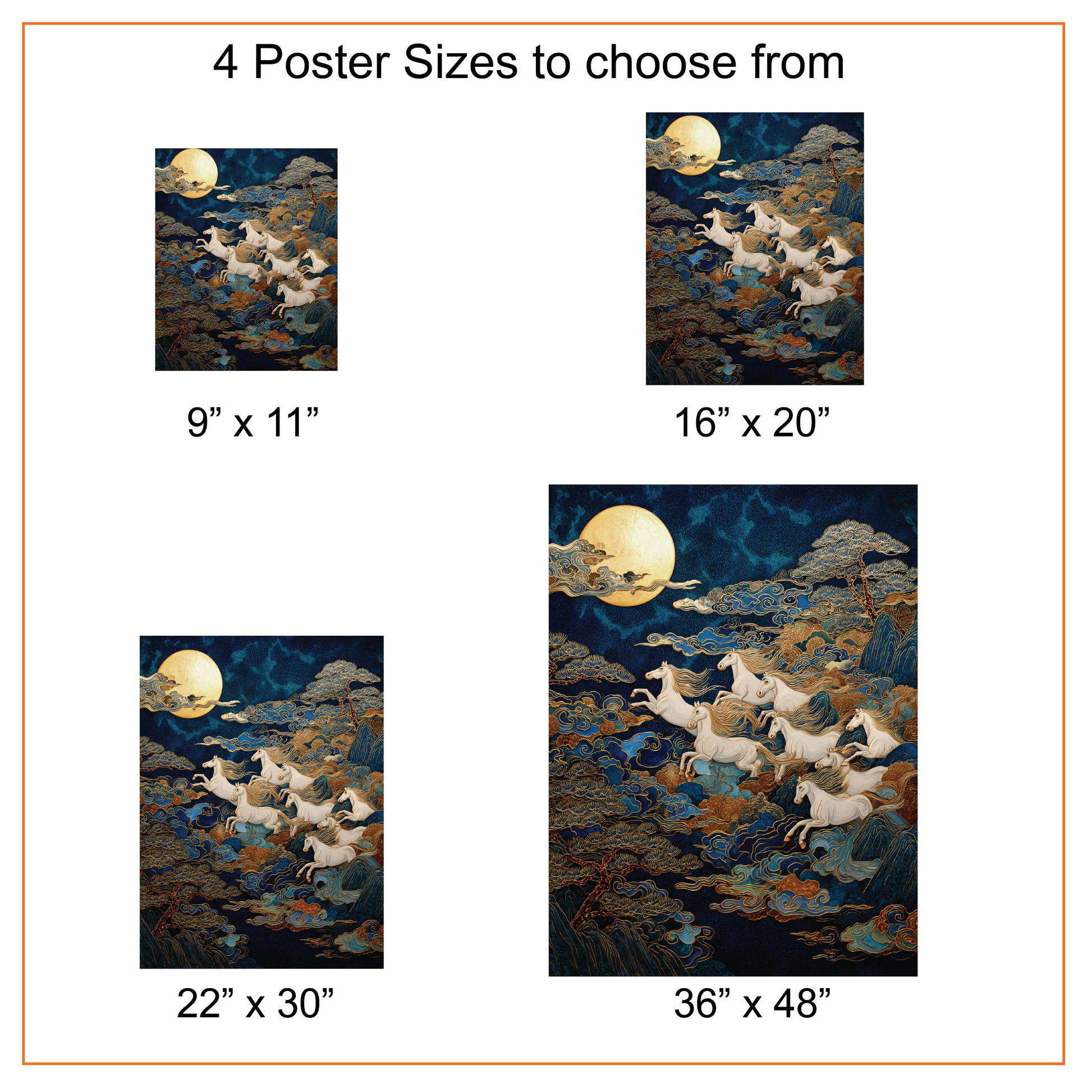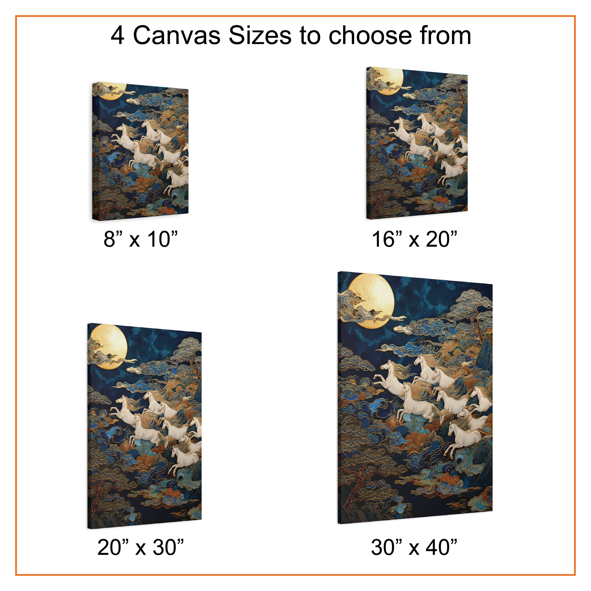 Elevate Your Decor - The breathtaking scene of eight celestial horses under a full moon adds a sense of magic, freedom, and sophisticated style to any room.