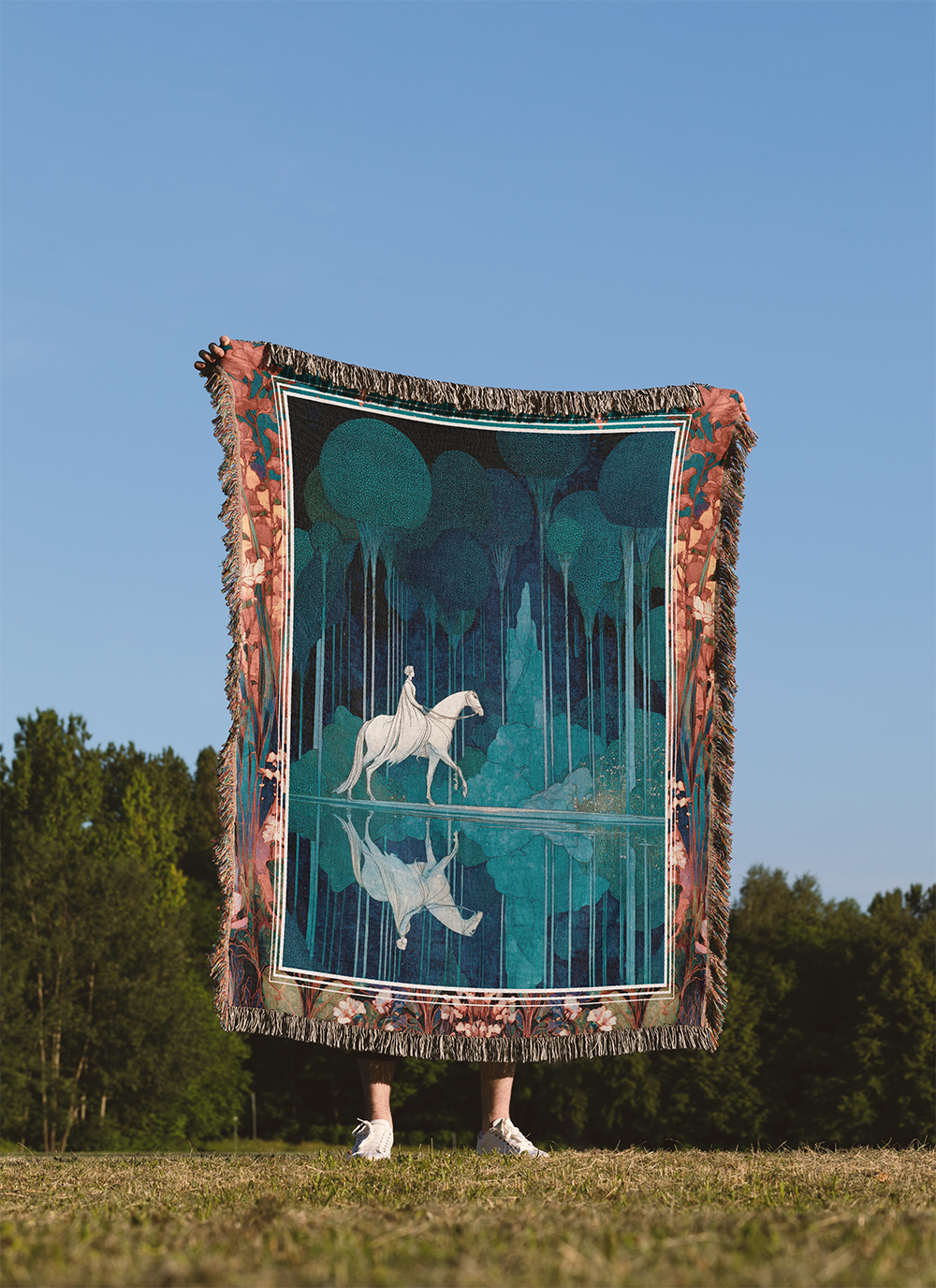 Fairytale Woven Blanket, Vintage Horse Tapestry, Dark Academia Jacquard Throw, Enchanted Forest Wall Hanging, Mythical Art Nouveau Gift
