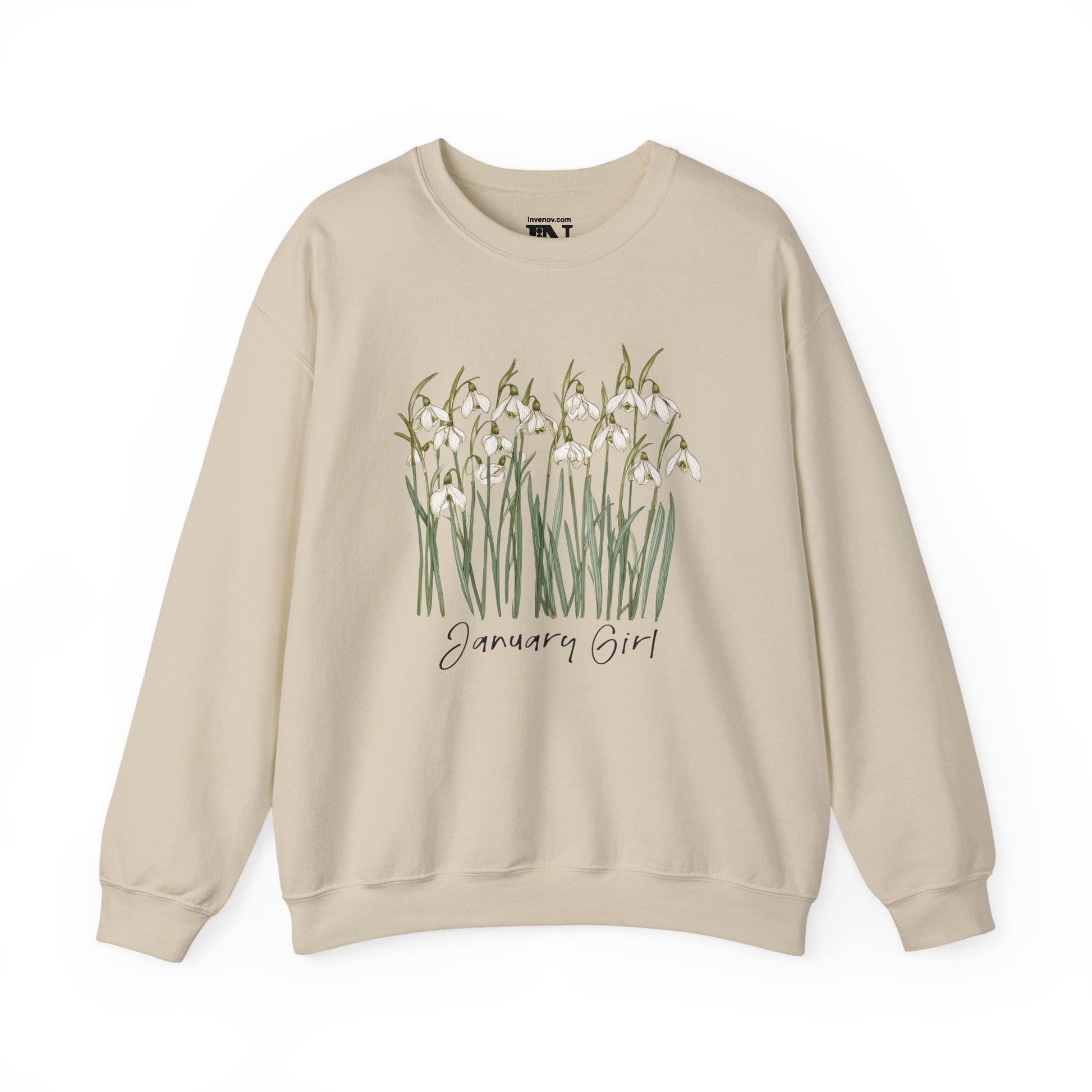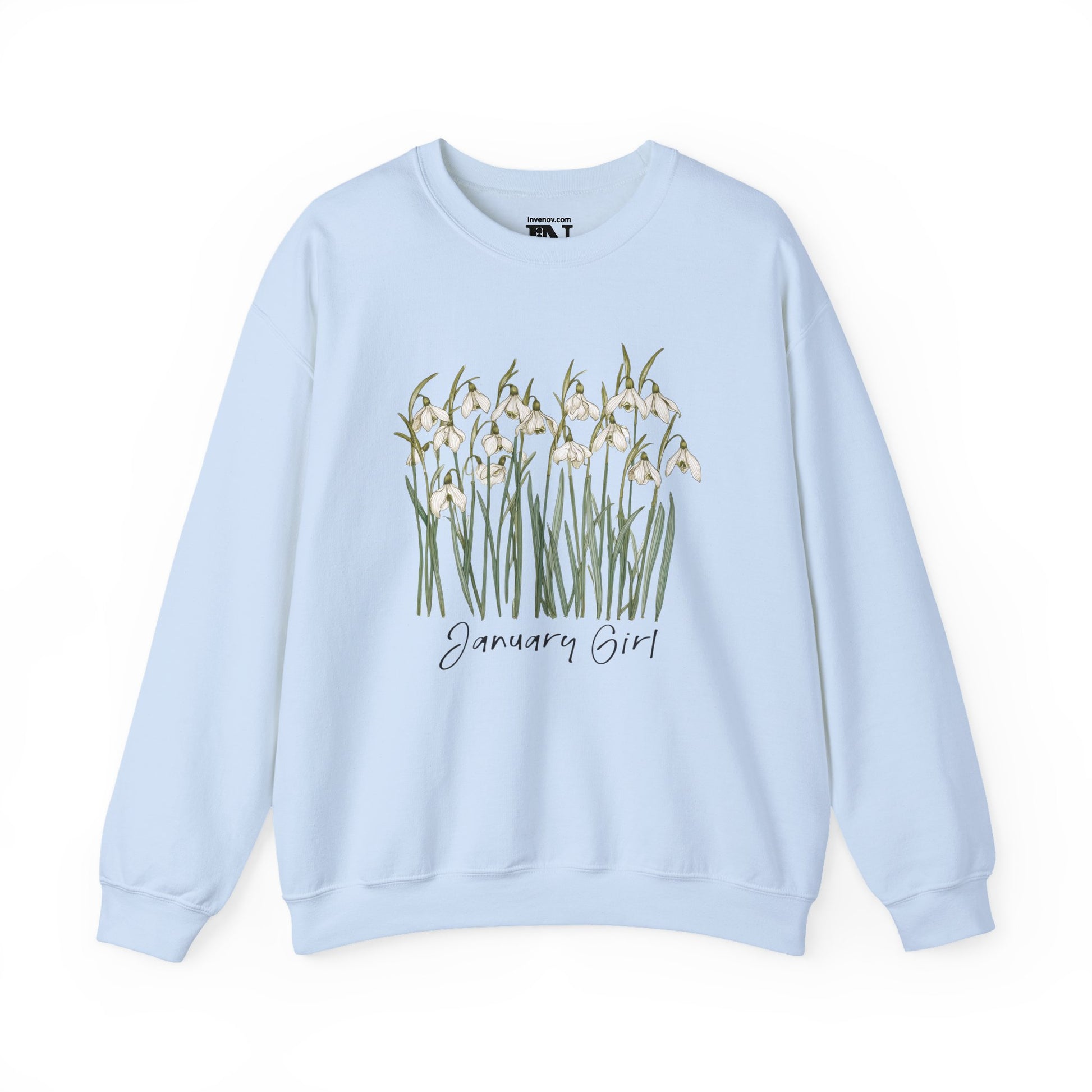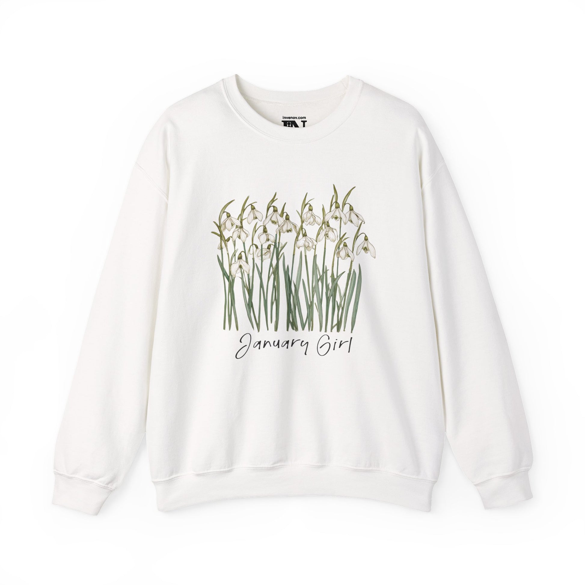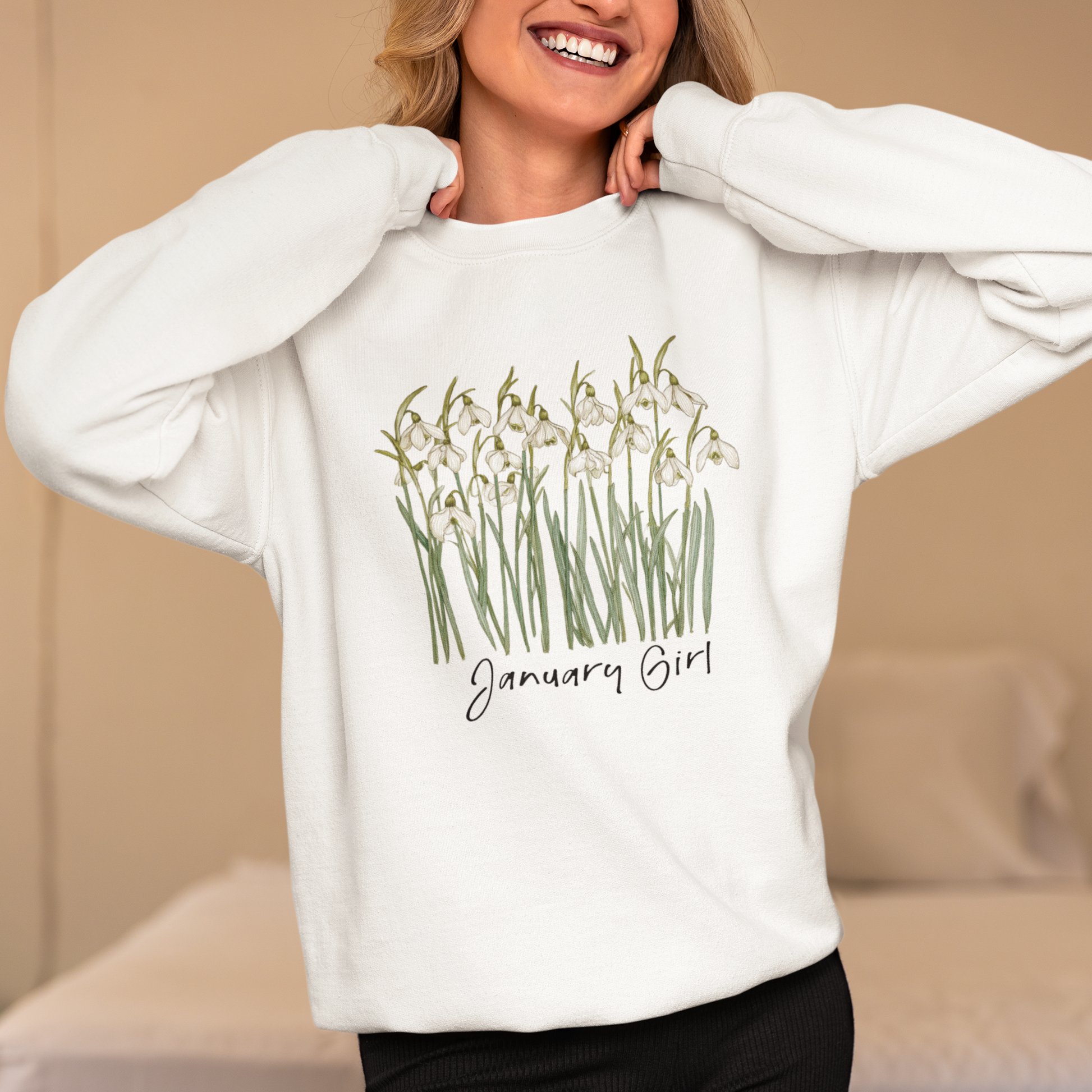 January Girl Snowdrop Flower Sweatshirt, January Birthday Sweater, Winter Birthday Gift, January Birth Flower Shirt, Cozy Botanical Crewneck