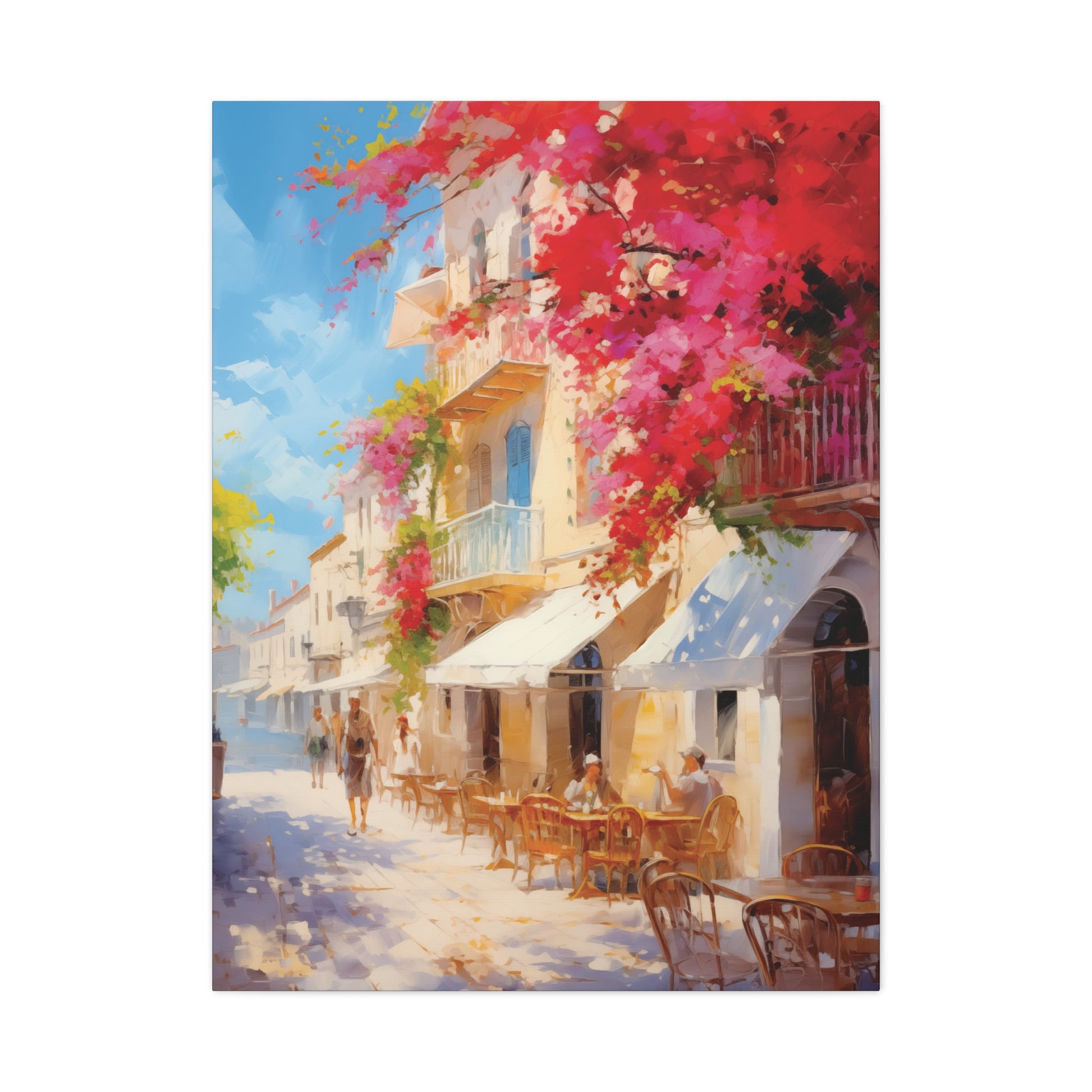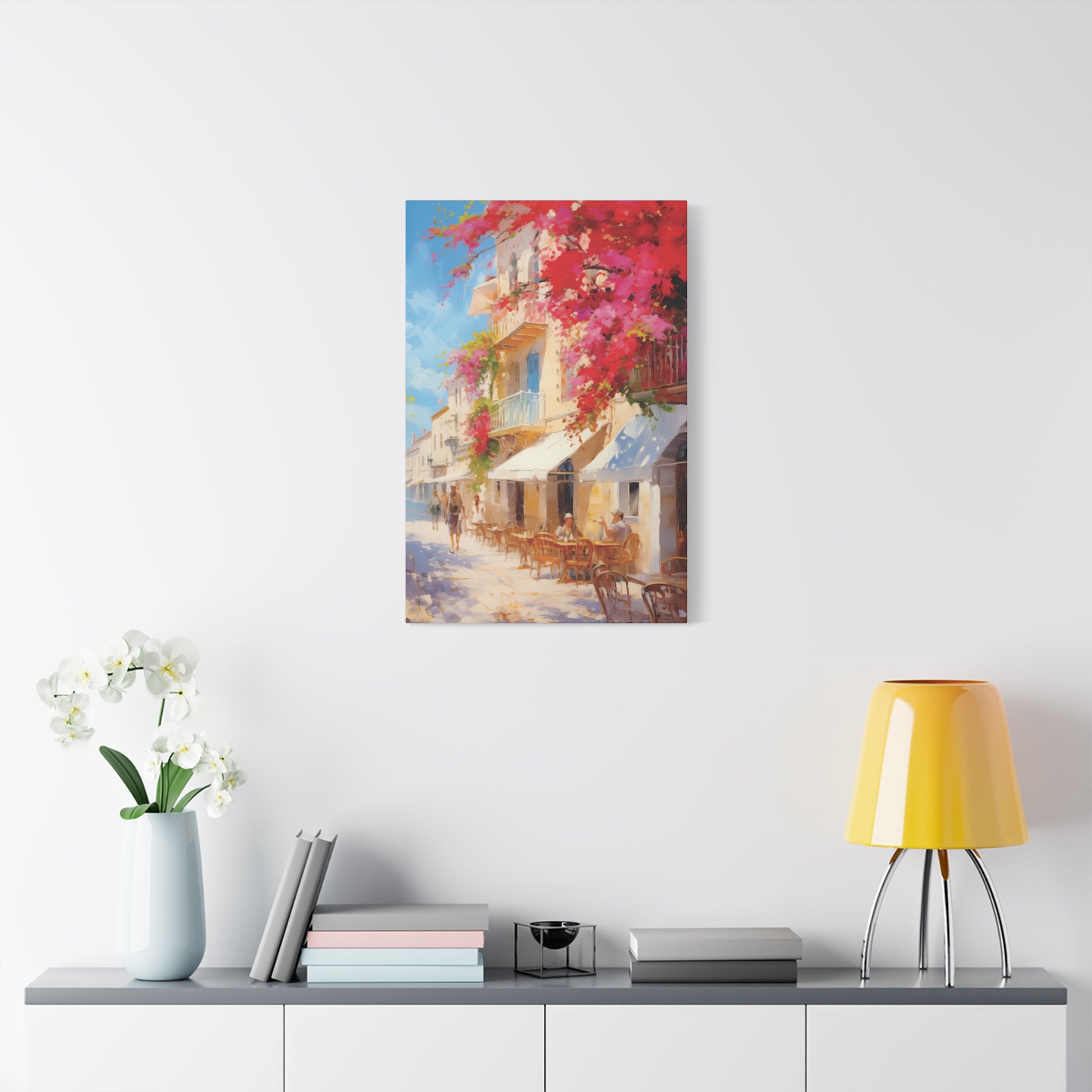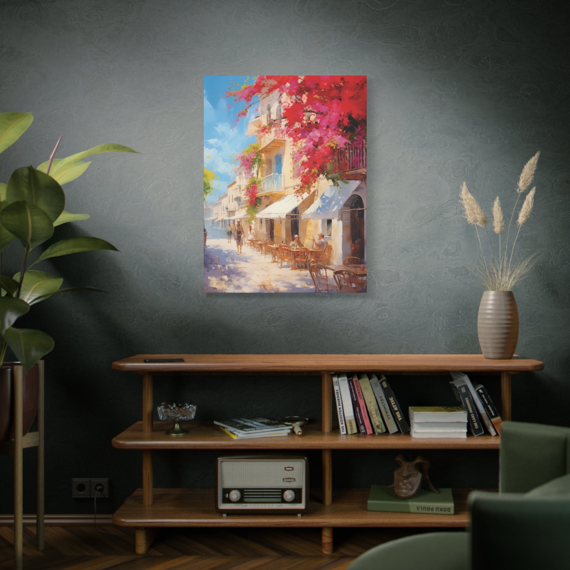 Mediterranean Street Scene Canvas Wall Art, Oil Painting Style, Home Decor Print, Gift for Art Lovers, Vibrant Wall Decor, Quaint Townscape
