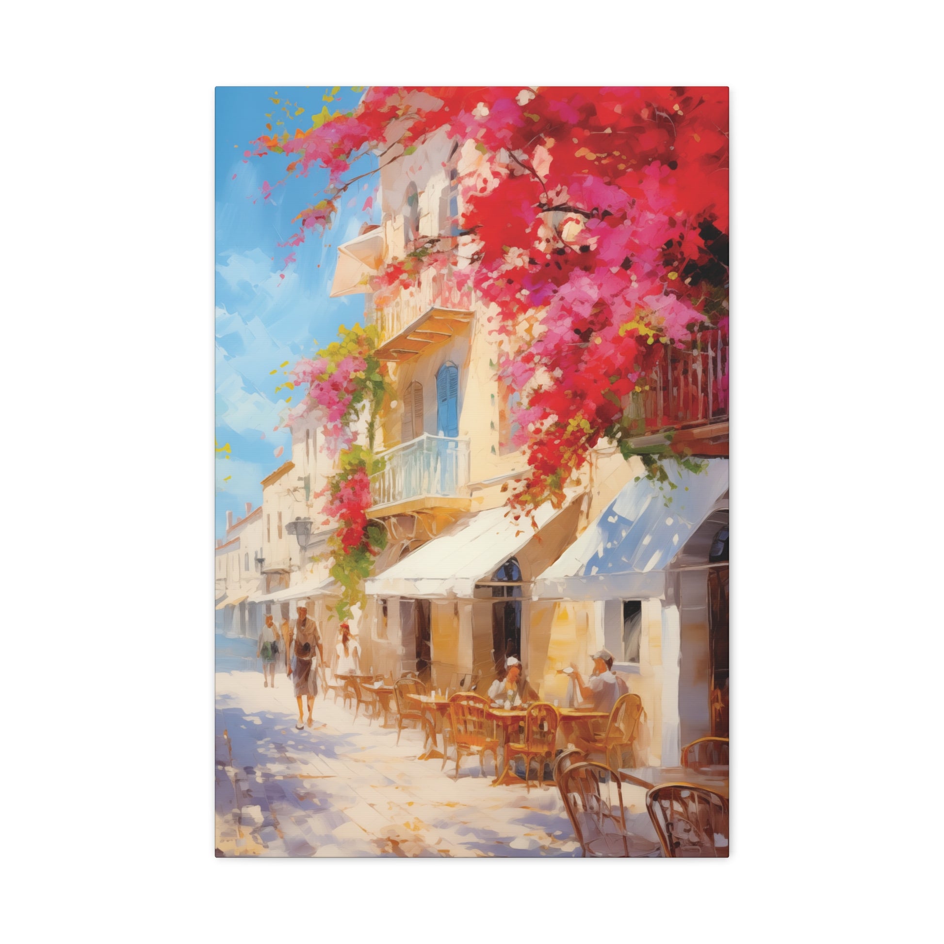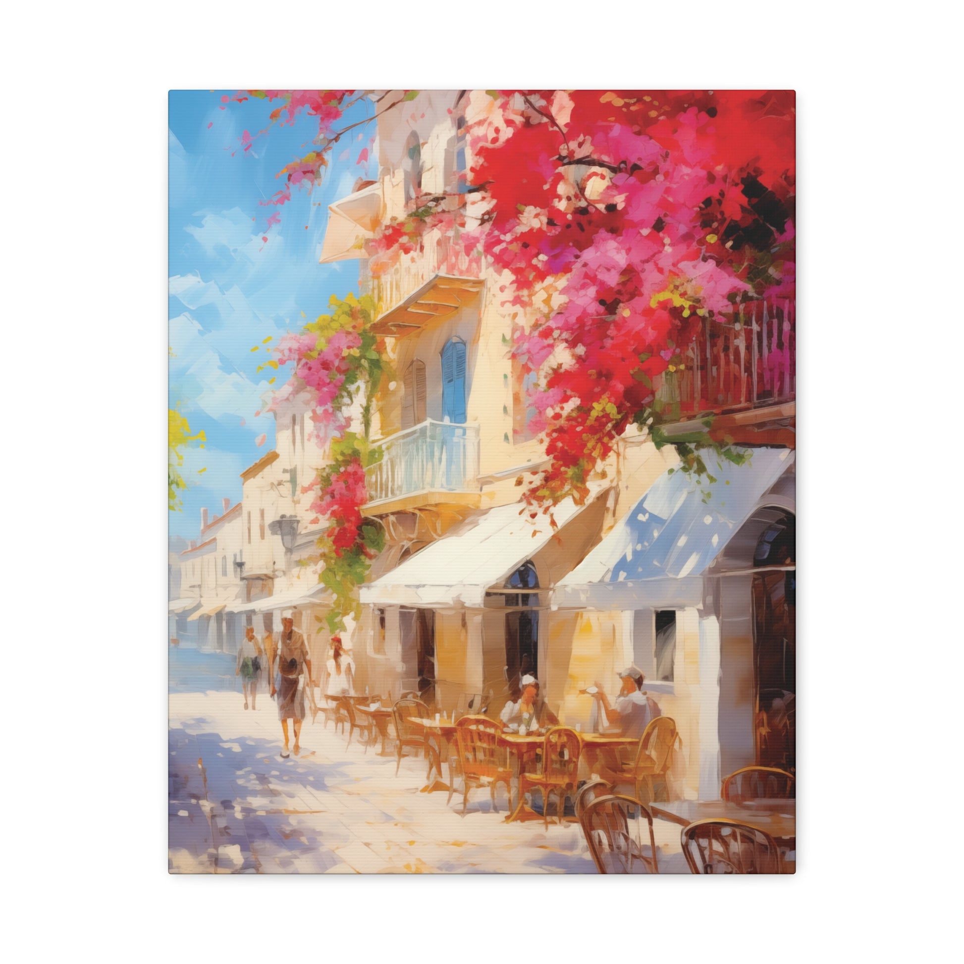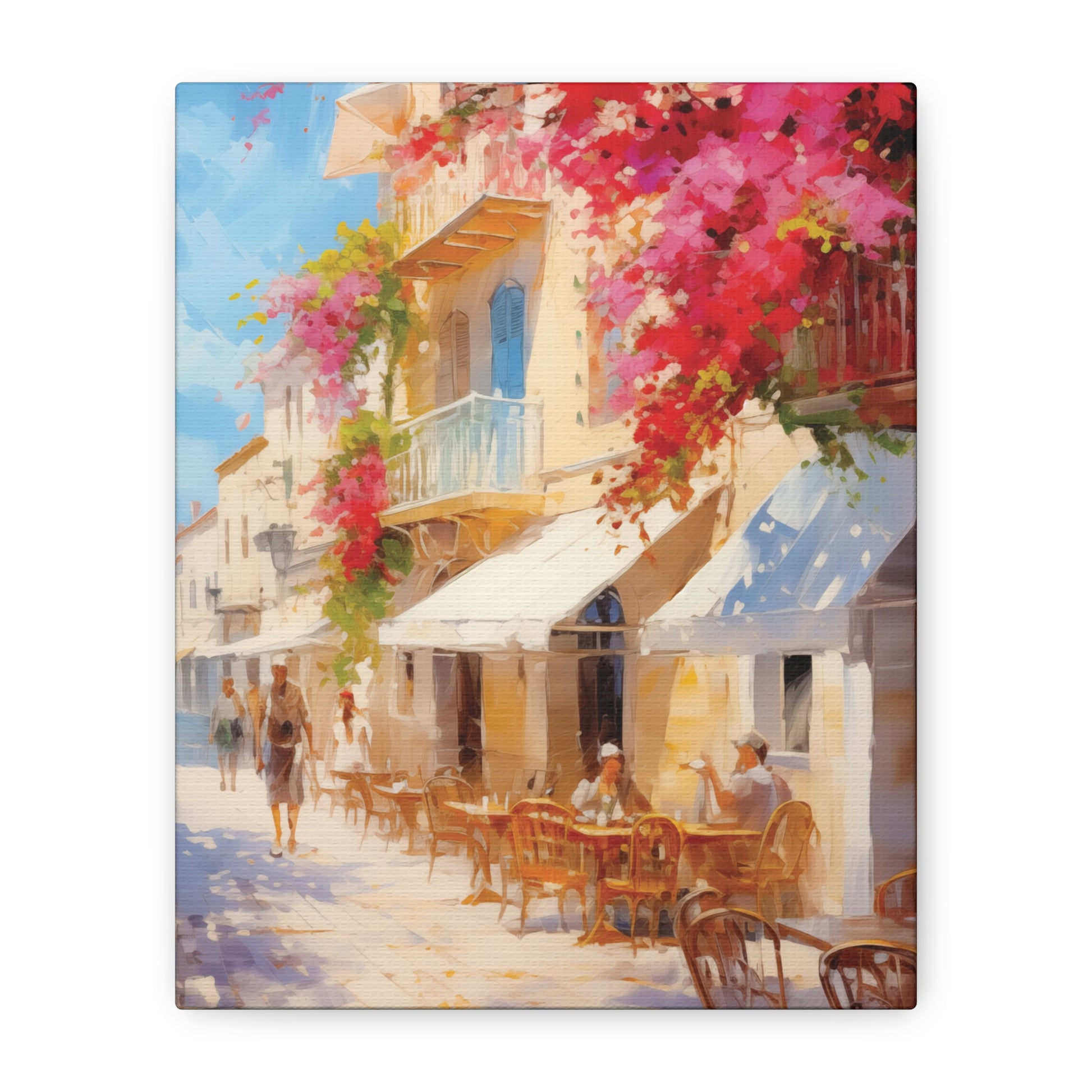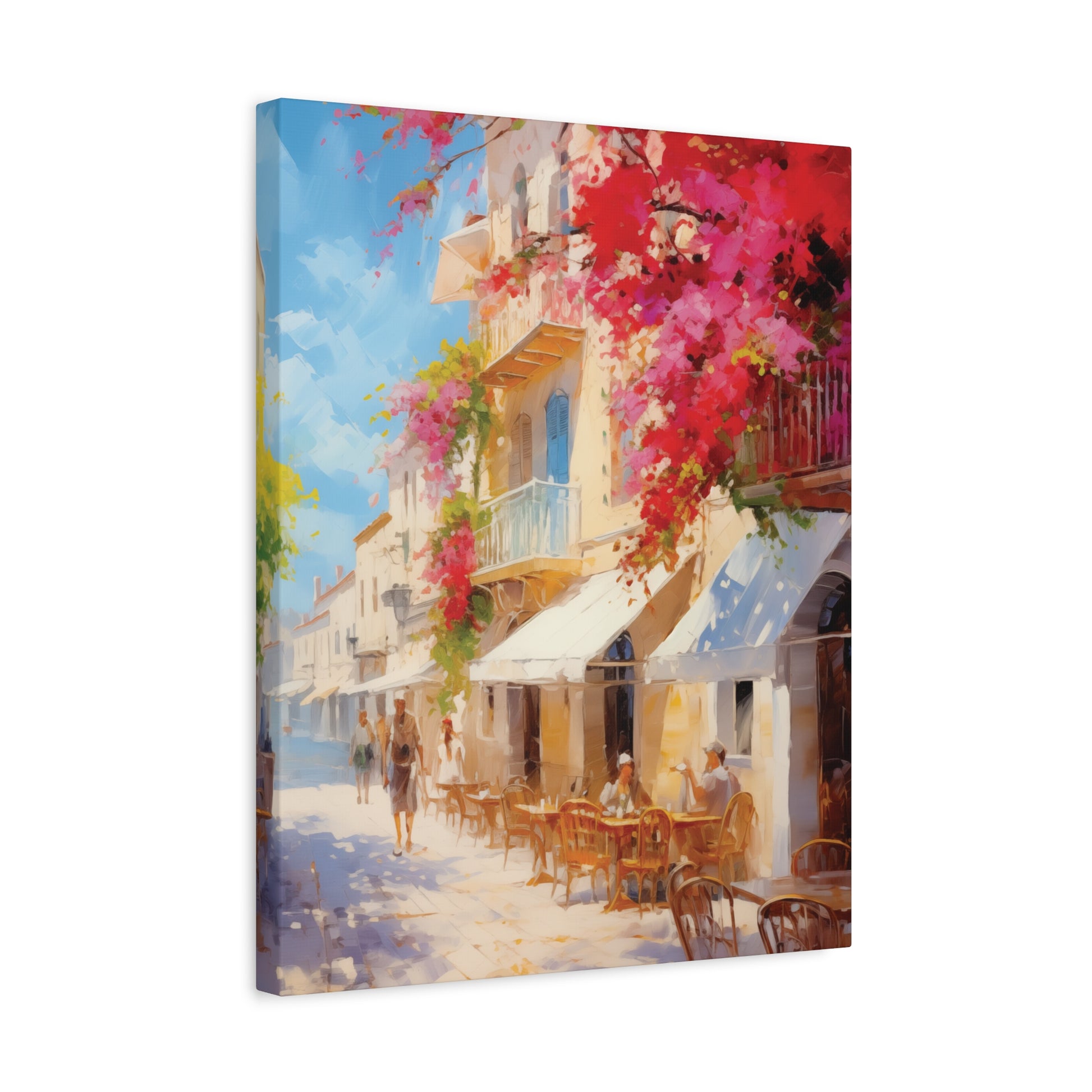 Mediterranean Street Scene Canvas Wall Art, Oil Painting Style, Home Decor Print, Gift for Art Lovers, Vibrant Wall Decor, Quaint Townscape