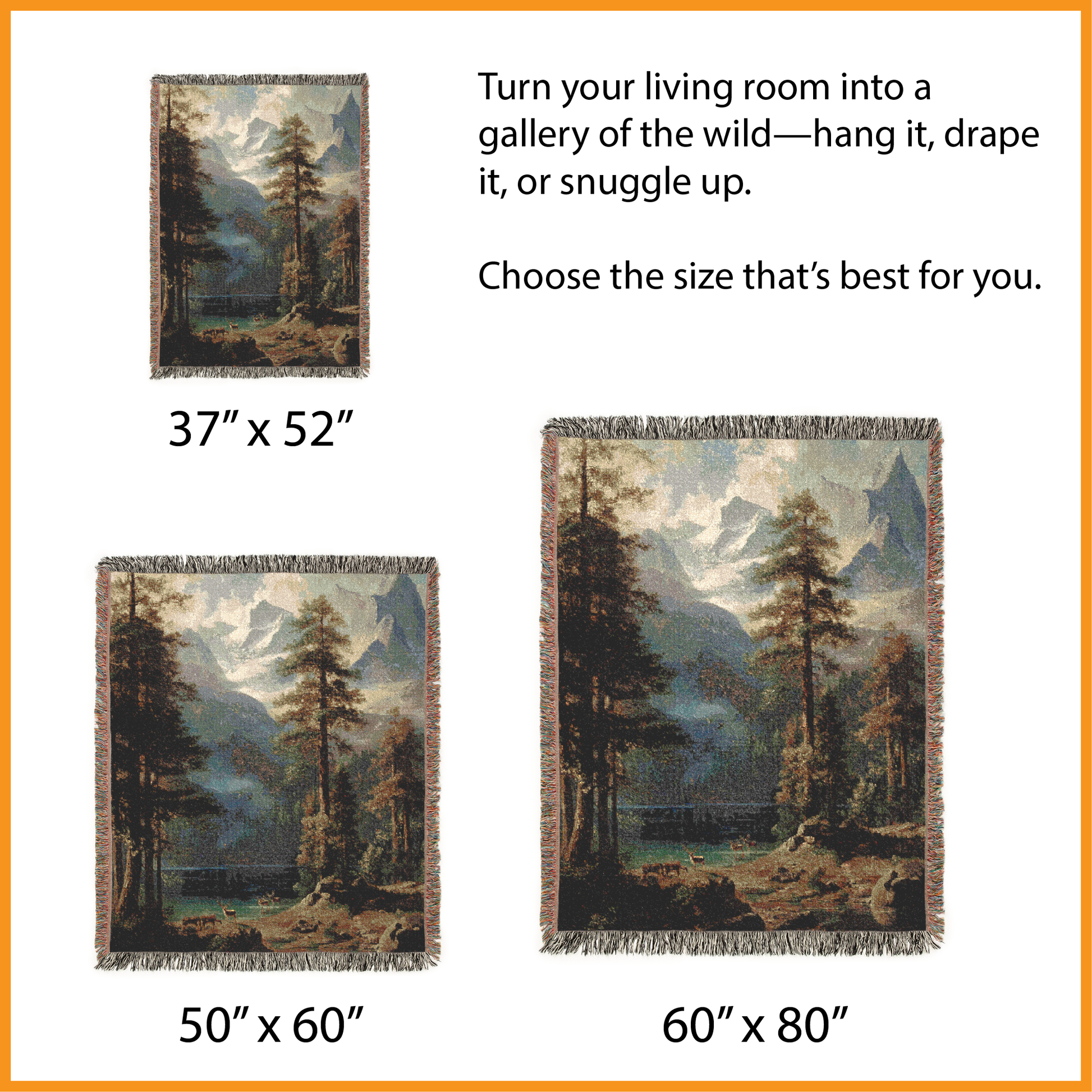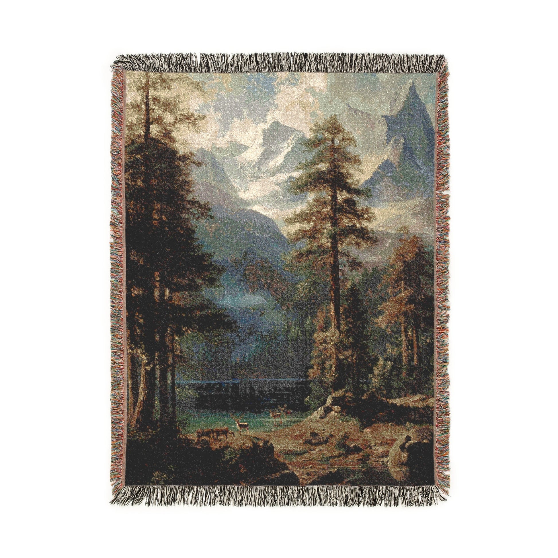 Mountain Wilderness Woven Blanket, Albert Bierstadt Inspired Decor, Forest Art Tapestry, Nature Landscape Throw Blanket, Rustic Cabin Decor