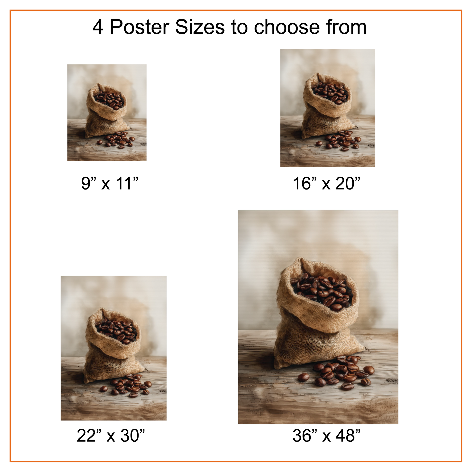 Rustic Coffee Bean Wall Art Print, Burlap Sack Coffee Decor for Kitchen Canvas or Poster Print, Cafe or Coffee Bar Decoration