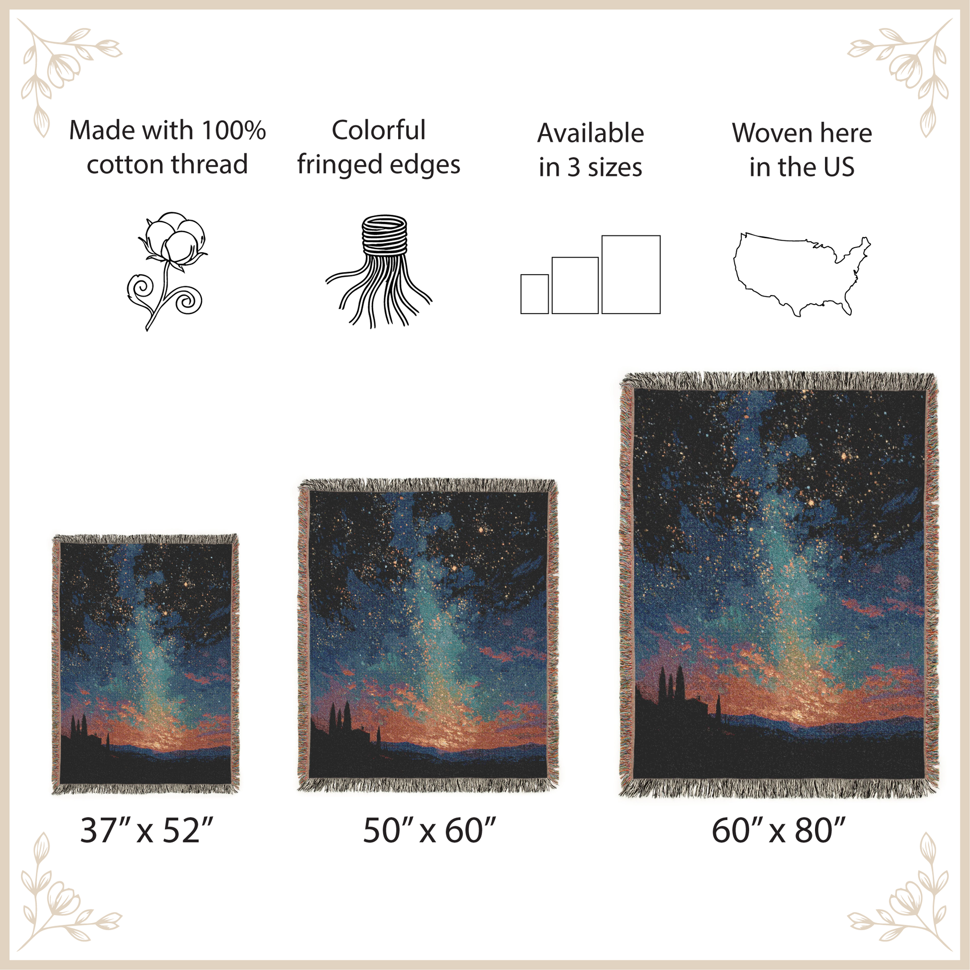 Starry Night Woven Blanket, Milky Way Galaxy Throw, Celestial Space Tapestry, Moody Nature Landscape, Camping Stargazer Gift Wall Art