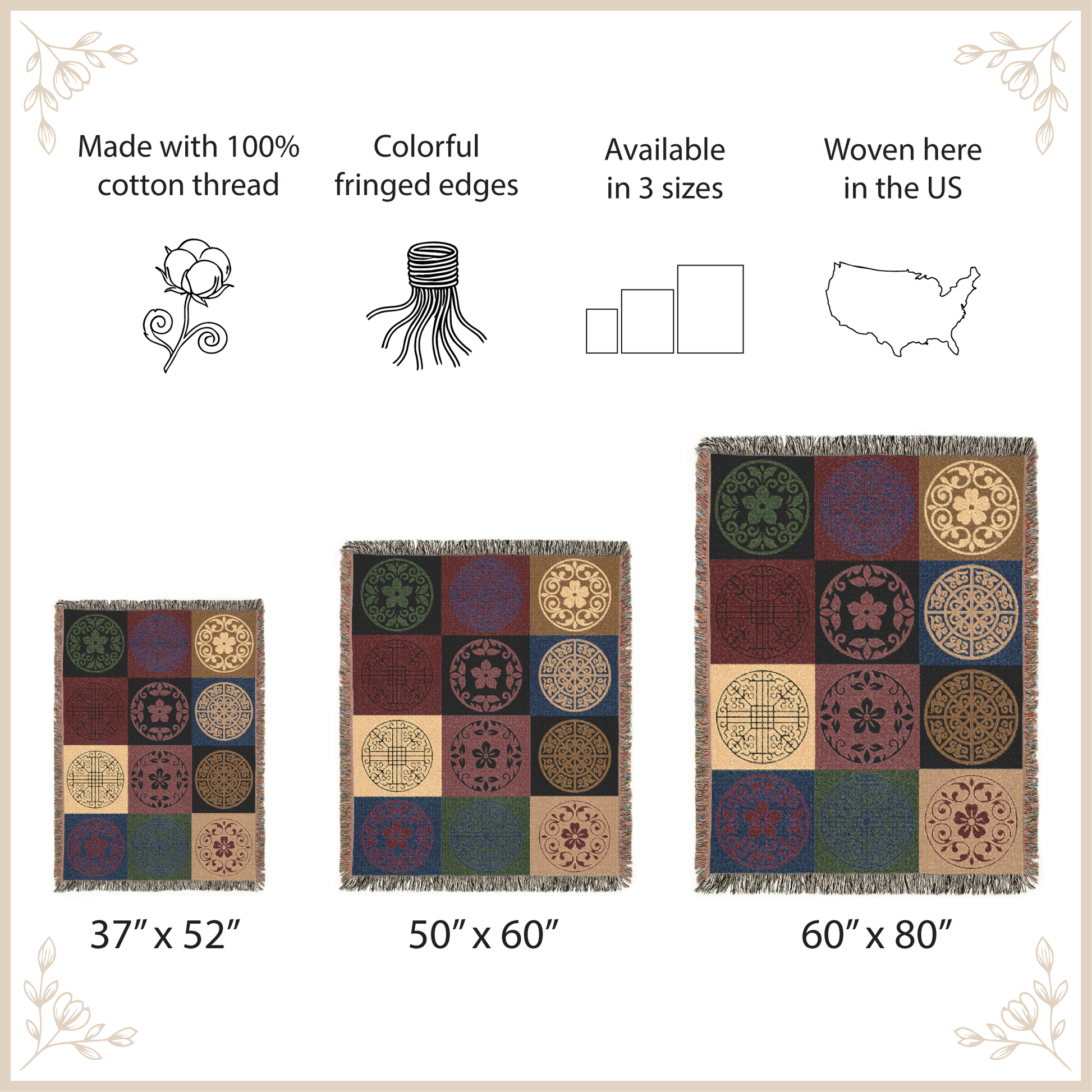 Traditional Asian Pattern Woven Blanket, Zen Lotus Mandala Throw, Oriental Patchwork Tapestry, Chinese Style Decor, Meditation Room Gift