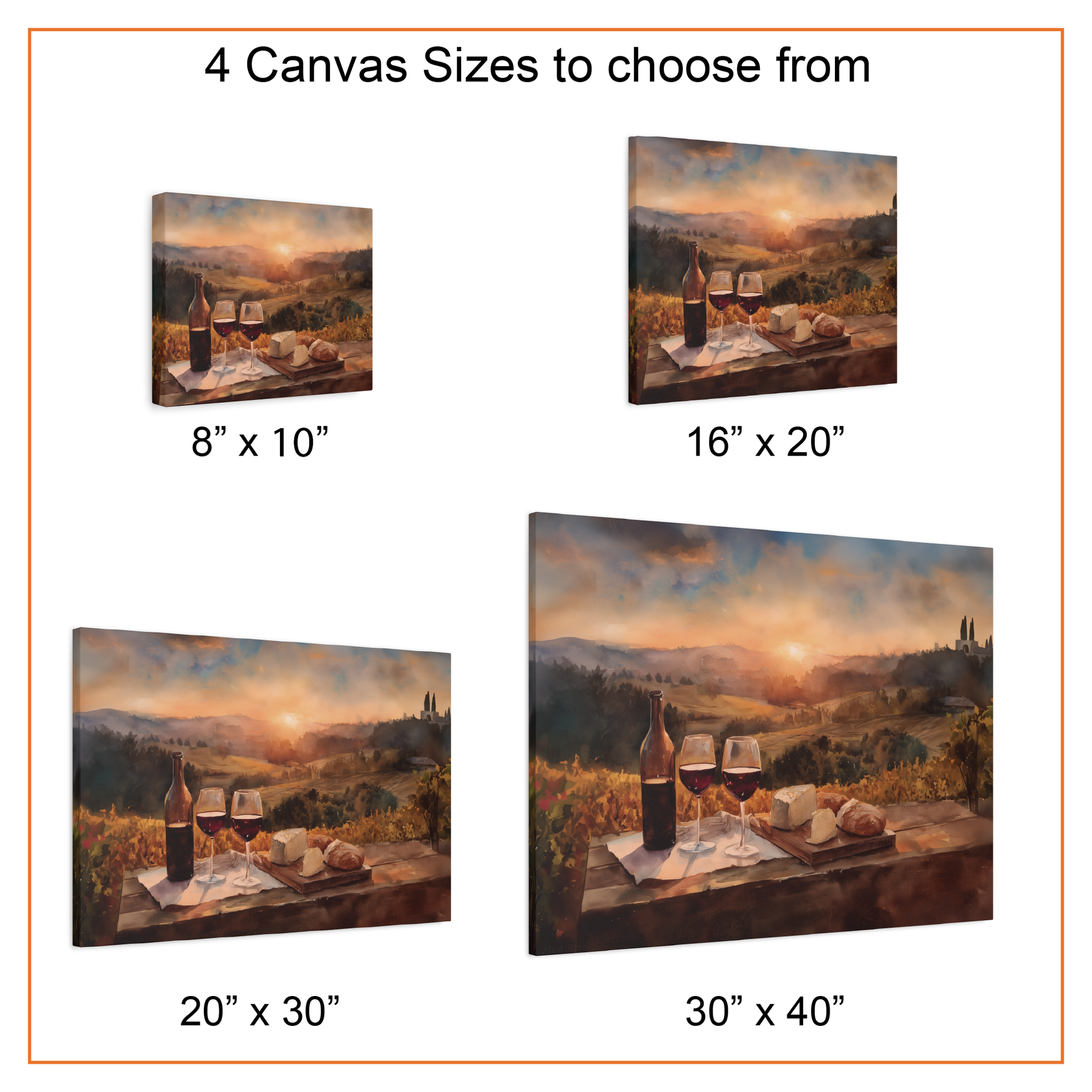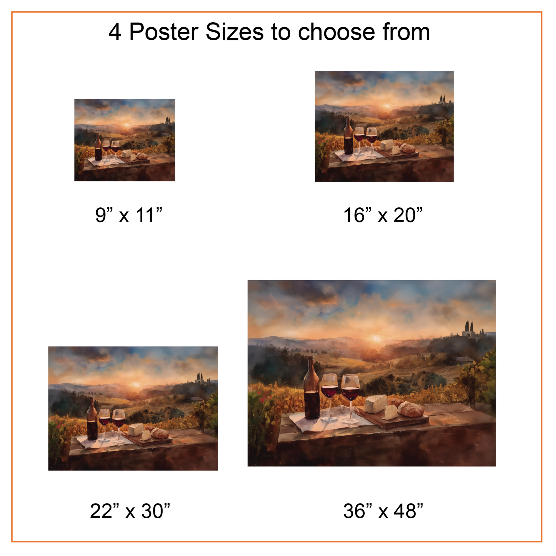 Vineyard Sunset Wall Art, Tuscany Wine and Cheese Countryside Canvas Poster Print, Italian Kitchen Poster, Romantic Wine Country Home Decor