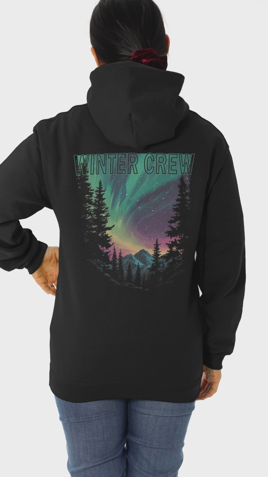 Winter Night Mountain Hoodie, Winter Crew Northern Lights Hoodie, Cozy Winter Crew Pullover, Stargazing Hoodie, Aurora Borealis Jumper